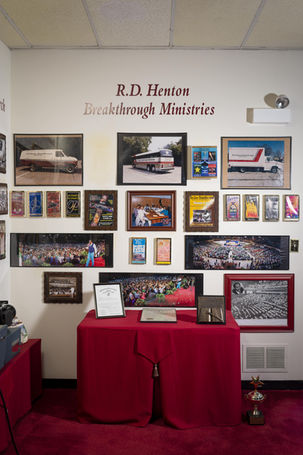 The memorial room is a dedicated library showcasing the life, legacy and ministry of the late Apostle R. D. Henton. The library takes you through the life of Apostle Henton from a young child until his passing. Here you will see photos, videos, handwritten messages, plaques and awards. Every aspect of this room was put together by Apostle Henton. He personally created this space as a remembrance of what God has done in his life. The room was private until the passing of Apostle Henton in October 2015. Once named the History room, is now named the Memorial Room.